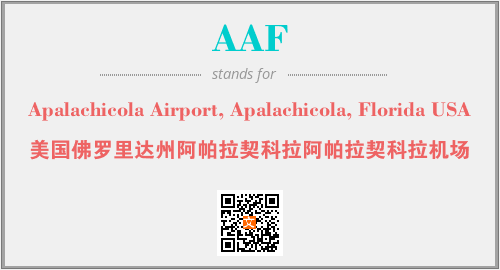 上述内容是“Apalachicola Airport, Apalachicola, Florida USA”作为“AAF”的缩写,解释为“美国佛罗里达州阿帕拉契科拉阿帕拉契科拉机场”时的信息,以及英文缩略词AAF所代表的英文单词,其对应的中文拼音、详细解释以及在英文中的流行度和相关分类、应用领域及应用示例等。