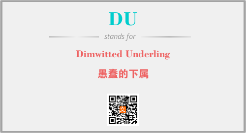 英文缩略词“DU”经常作为“Dimwitted Underling”的英文缩写来使用,中文表示:“愚蠢的下属”。本文将详细介绍英文缩写词DU所代表英文单词,其对应的中文拼音、详细解释以及在英语中的流行度。此外,还有关于缩略词DU的分类、应用领域及相关应用示例等。