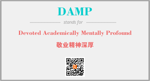以上为Devoted Academically Mentally Profound英文缩略词DAMP的中文解释,以及该英文缩写在英语的流行度、分类和应用领域方面的信息。
