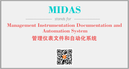 英文缩略词“MIDAS”经常作为“Management Instrumentation Documentation and Automation System”的英文缩写来使用,中文表示:“管理仪表文件和自动化系统”。本文将详细介绍英文缩写词MIDAS所代表英文单词,其对应的中文拼音、详细解释以及在英语中的流行度。此外,还有关于缩略词MIDAS的分类、应用领域及相关应用示例等。