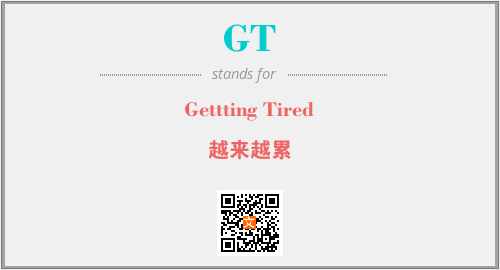 英文缩略词“GT”经常作为“Gettting Tired”的英文缩写来使用,中文表示:“越来越累”。本文将详细介绍英文缩写词GT所代表英文单词,其对应的中文拼音、详细解释以及在英语中的流行度。此外,还有关于缩略词GT的分类、应用领域及相关应用示例等。