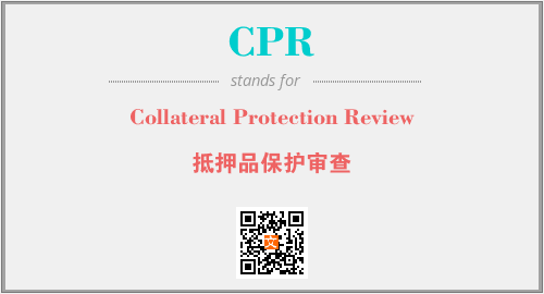 上述内容是“Collateral Protection Review”作为“CPR”的缩写,解释为“抵押品保护审查”时的信息,以及英文缩略词CPR所代表的英文单词,其对应的中文拼音、详细解释以及在英文中的流行度和相关分类、应用领域及应用示例等。