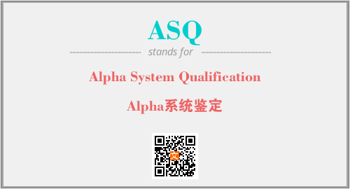 上述内容是“Alpha System Qualification”作为“ASQ”的缩写,解释为“Alpha系统鉴定”时的信息,以及英文缩略词ASQ所代表的英文单词,其对应的中文拼音、详细解释以及在英文中的流行度和相关分类、应用领域及应用示例等。