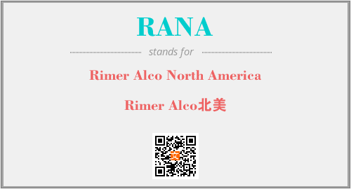 上述内容是“Rimer Alco North America”作为“RANA”的缩写,解释为“Rimer Alco北美”时的信息,以及英文缩略词RANA所代表的英文单词,其对应的中文拼音、详细解释以及在英文中的流行度和相关分类、应用领域及应用示例等。