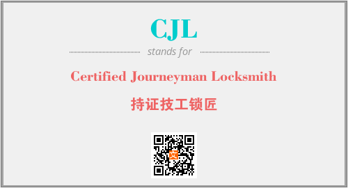 英文缩略词“CJL”经常作为“Certified Journeyman Locksmith”的英文缩写来使用,中文表示:“持证技工锁匠”。本文将详细介绍英文缩写词CJL所代表英文单词,其对应的中文拼音、详细解释以及在英语中的流行度。此外,还有关于缩略词CJL的分类、应用领域及相关应用示例等。
