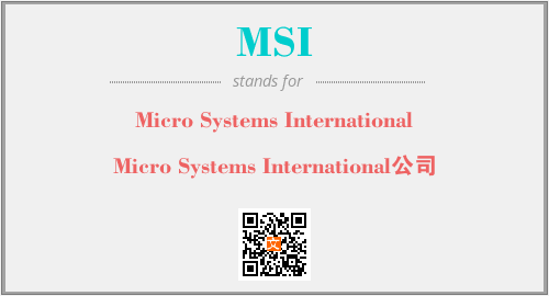 英文缩略词“MSI”经常作为“Micro Systems International”的英文缩写来使用,中文表示:“Micro Systems International公司”。本文将详细介绍英文缩写词MSI所代表英文单词,其对应的中文拼音、详细解释以及在英语中的流行度。此外,还有关于缩略词MSI的分类、应用领域及相关应用示例等。