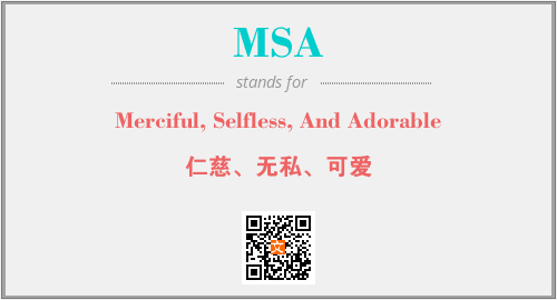 上述内容是“Merciful, Selfless, And Adorable”作为“MSA”的缩写,解释为“仁慈、无私、可爱”时的信息,以及英文缩略词MSA所代表的英文单词,其对应的中文拼音、详细解释以及在英文中的流行度和相关分类、应用领域及应用示例等。