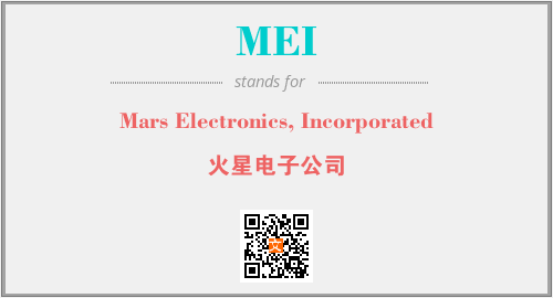 上述内容是“Mars Electronics, Incorporated”作为“MEI”的缩写,解释为“火星电子公司”时的信息,以及英文缩略词MEI所代表的英文单词,其对应的中文拼音、详细解释以及在英文中的流行度和相关分类、应用领域及应用示例等。