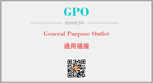 以上为General Purpose Outlet英文缩略词GPO的中文解释,以及该英文缩写在英语的流行度、分类和应用领域方面的信息。