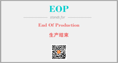 上述内容是“End Of Production”作为“EOP”的缩写,解释为“生产结束”时的信息,以及英文缩略词EOP所代表的英文单词,其对应的中文拼音、详细解释以及在英文中的流行度和相关分类、应用领域及应用示例等。