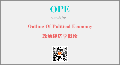 上述内容是“Outline Of Political Economy”作为“OPE”的缩写,解释为“政治经济学概论”时的信息,以及英文缩略词OPE所代表的英文单词,其对应的中文拼音、详细解释以及在英文中的流行度和相关分类、应用领域及应用示例等。