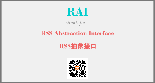 上述内容是“RSS Abstraction Interface”作为“RAI”的缩写,解释为“RSS抽象接口”时的信息,以及英文缩略词RAI所代表的英文单词,其对应的中文拼音、详细解释以及在英文中的流行度和相关分类、应用领域及应用示例等。