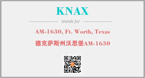 上述内容是“AM-1630, Ft. Worth, Texas”作为“KNAX”的缩写,解释为“德克萨斯州沃思堡AM-1630”时的信息,以及英文缩略词KNAX所代表的英文单词,其对应的中文拼音、详细解释以及在英文中的流行度和相关分类、应用领域及应用示例等。