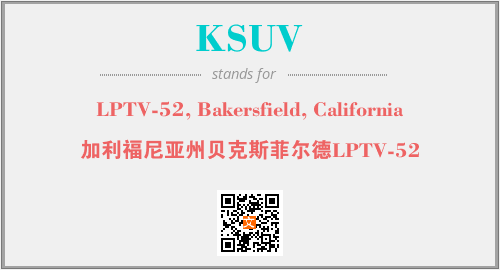 上述内容是“LPTV-52, Bakersfield, California”作为“KSUV”的缩写,解释为“加利福尼亚州贝克斯菲尔德LPTV-52”时的信息,以及英文缩略词KSUV所代表的英文单词,其对应的中文拼音、详细解释以及在英文中的流行度和相关分类、应用领域及应用示例等。