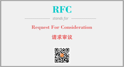 上述内容是“Request For Consideration”作为“RFC”的缩写,解释为“请求审议”时的信息,以及英文缩略词RFC所代表的英文单词,其对应的中文拼音、详细解释以及在英文中的流行度和相关分类、应用领域及应用示例等。