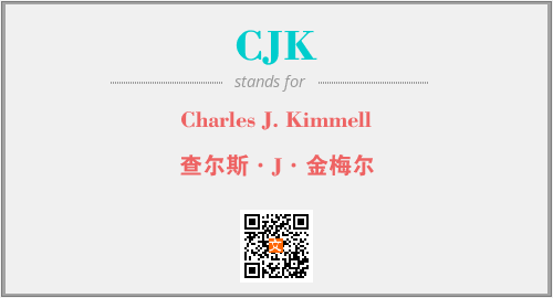 上述内容是“Charles J. Kimmell”作为“CJK”的缩写,解释为“查尔斯·J·金梅尔”时的信息,以及英文缩略词CJK所代表的英文单词,其对应的中文拼音、详细解释以及在英文中的流行度和相关分类、应用领域及应用示例等。