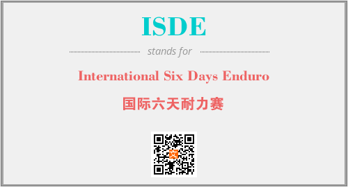 英文缩略词“ISDE”经常作为“International Six Days Enduro”的英文缩写来使用,中文表示:“国际六天耐力赛”。本文将详细介绍英文缩写词ISDE所代表英文单词,其对应的中文拼音、详细解释以及在英语中的流行度。此外,还有关于缩略词ISDE的分类、应用领域及相关应用示例等。