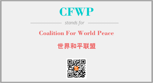 上述内容是“Coalition For World Peace”作为“CFWP”的缩写,解释为“世界和平联盟”时的信息,以及英文缩略词CFWP所代表的英文单词,其对应的中文拼音、详细解释以及在英文中的流行度和相关分类、应用领域及应用示例等。