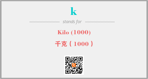 上述内容是“Kilo (1000)”作为“k”的缩写,解释为“千克(1000)”时的信息,以及英文缩略词k所代表的英文单词,其对应的中文拼音、详细解释以及在英文中的流行度和相关分类、应用领域及应用示例等。