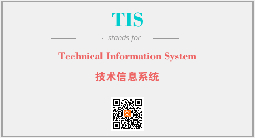 英文缩略词“TIS”经常作为“Technical Information System”的英文缩写来使用,中文表示:“技术信息系统”。本文将详细介绍英文缩写词TIS所代表英文单词,其对应的中文拼音、详细解释以及在英语中的流行度。此外,还有关于缩略词TIS的分类、应用领域及相关应用示例等。