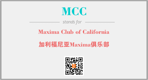 英文缩略词“MCC”经常作为“Maxima Club of California”的英文缩写来使用,中文表示:“加利福尼亚Maxima俱乐部”。本文将详细介绍英文缩写词MCC所代表英文单词,其对应的中文拼音、详细解释以及在英语中的流行度。此外,还有关于缩略词MCC的分类、应用领域及相关应用示例等。