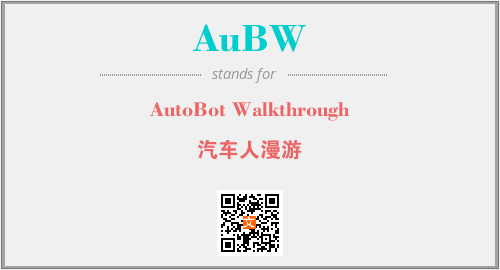 上述内容是“AutoBot Walkthrough”作为“AuBW”的缩写,解释为“汽车人漫游”时的信息,以及英文缩略词AuBW所代表的英文单词,其对应的中文拼音、详细解释以及在英文中的流行度和相关分类、应用领域及应用示例等。