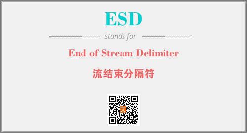 英文缩略词“ESD”经常作为“End of Stream Delimiter”的英文缩写来使用,中文表示:“流结束分隔符”。本文将详细介绍英文缩写词ESD所代表英文单词,其对应的中文拼音、详细解释以及在英语中的流行度。此外,还有关于缩略词ESD的分类、应用领域及相关应用示例等。