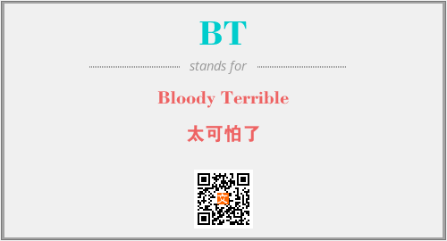 以上为Bloody Terrible英文缩略词BT的中文解释,以及该英文缩写在英语的流行度、分类和应用领域方面的信息。