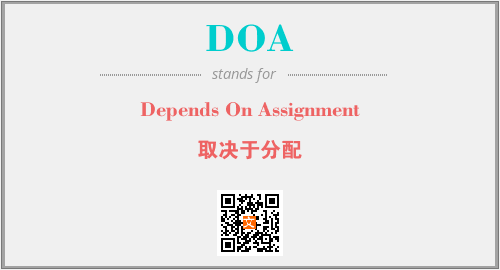 上述内容是“Depends On Assignment”作为“DOA”的缩写,解释为“取决于分配”时的信息,以及英文缩略词DOA所代表的英文单词,其对应的中文拼音、详细解释以及在英文中的流行度和相关分类、应用领域及应用示例等。