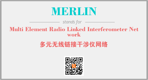 上述内容是“Multi Element Radio Linked Interferometer Network”作为“MERLIN”的缩写,解释为“多元无线链接干涉仪网络”时的信息,以及英文缩略词MERLIN所代表的英文单词,其对应的中文拼音、详细解释以及在英文中的流行度和相关分类、应用领域及应用示例等。