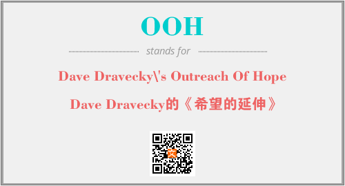 上述内容是“Dave Dravecky\'s Outreach Of Hope”作为“OOH”的缩写,解释为“Dave Dravecky的《希望的延伸》”时的信息,以及英文缩略词OOH所代表的英文单词,其对应的中文拼音、详细解释以及在英文中的流行度和相关分类、应用领域及应用示例等。