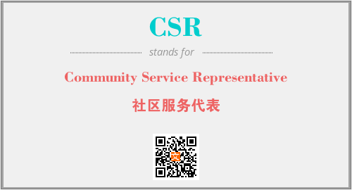 上述内容是“Community Service Representative”作为“CSR”的缩写,解释为“社区服务代表”时的信息,以及英文缩略词CSR所代表的英文单词,其对应的中文拼音、详细解释以及在英文中的流行度和相关分类、应用领域及应用示例等。