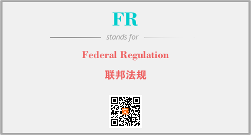 上述内容是“Federal Regulation”作为“FR”的缩写,解释为“联邦法规”时的信息,以及英文缩略词FR所代表的英文单词,其对应的中文拼音、详细解释以及在英文中的流行度和相关分类、应用领域及应用示例等。