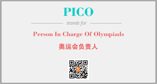 上述内容是“Person In Charge Of Olympiads”作为“PICO”的缩写,解释为“奥运会负责人”时的信息,以及英文缩略词PICO所代表的英文单词,其对应的中文拼音、详细解释以及在英文中的流行度和相关分类、应用领域及应用示例等。