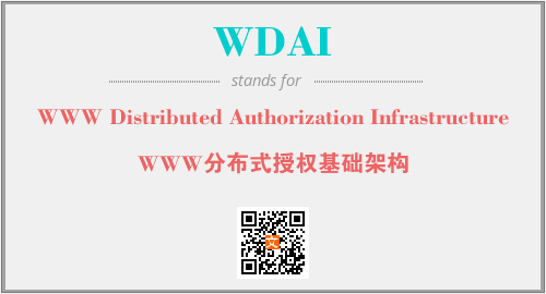 英文缩略词“WDAI”经常作为“WWW Distributed Authorization Infrastructure”的英文缩写来使用,中文表示:“WWW分布式授权基础架构”。本文将详细介绍英文缩写词WDAI所代表英文单词,其对应的中文拼音、详细解释以及在英语中的流行度。此外,还有关于缩略词WDAI的分类、应用领域及相关应用示例等。