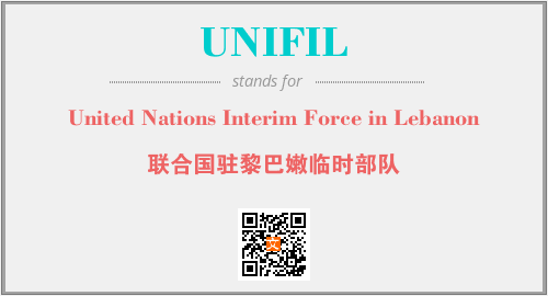 英文缩略词“UNIFIL”经常作为“United Nations Interim Force in Lebanon”的英文缩写来使用,中文表示:“联合国驻黎巴嫩临时部队”。本文将详细介绍英文缩写词UNIFIL所代表英文单词,其对应的中文拼音、详细解释以及在英语中的流行度。此外,还有关于缩略词UNIFIL的分类、应用领域及相关应用示例等。
