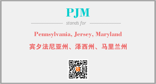 上述内容是“Pennsylvania, Jersey, Maryland”作为“PJM”的缩写,解释为“宾夕法尼亚州、泽西州、马里兰州”时的信息,以及英文缩略词PJM所代表的英文单词,其对应的中文拼音、详细解释以及在英文中的流行度和相关分类、应用领域及应用示例等。