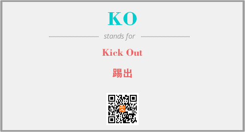 英文缩略词“KO”经常作为“Kick Out”的英文缩写来使用,中文表示:“踢出”。本文将详细介绍英文缩写词KO所代表英文单词,其对应的中文拼音、详细解释以及在英语中的流行度。此外,还有关于缩略词KO的分类、应用领域及相关应用示例等。