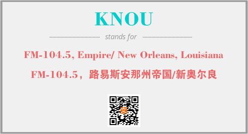 上述内容是“FM-104.5, Empire/ New Orleans, Louisiana”作为“KNOU”的缩写,解释为“FM-104.5,路易斯安那州帝国/新奥尔良”时的信息,以及英文缩略词KNOU所代表的英文单词,其对应的中文拼音、详细解释以及在英文中的流行度和相关分类、应用领域及应用示例等。