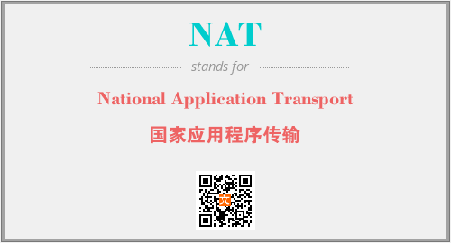 上述内容是“National Application Transport”作为“NAT”的缩写,解释为“国家应用程序传输”时的信息,以及英文缩略词NAT所代表的英文单词,其对应的中文拼音、详细解释以及在英文中的流行度和相关分类、应用领域及应用示例等。
