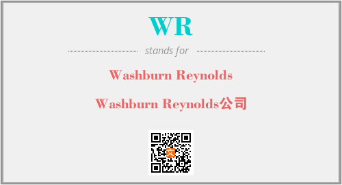 上述内容是“Washburn Reynolds”作为“WR”的缩写,解释为“Washburn Reynolds公司”时的信息,以及英文缩略词WR所代表的英文单词,其对应的中文拼音、详细解释以及在英文中的流行度和相关分类、应用领域及应用示例等。