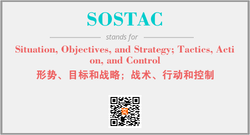 以上为Situation, Objectives, and Strategy; Tactics, Action, and Control英文缩略词SOSTAC的中文解释,以及该英文缩写在英语的流行度、分类和应用领域方面的信息。