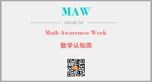 英文缩略词“MAW”经常作为“Math Awareness Week”的英文缩写来使用,中文表示:“数学认知周”。本文将详细介绍英文缩写词MAW所代表英文单词,其对应的中文拼音、详细解释以及在英语中的流行度。此外,还有关于缩略词MAW的分类、应用领域及相关应用示例等。