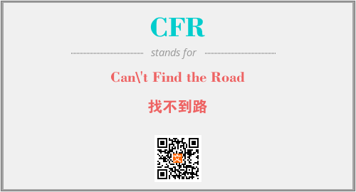 上述内容是“Can\'t Find the Road”作为“CFR”的缩写,解释为“找不到路”时的信息,以及英文缩略词CFR所代表的英文单词,其对应的中文拼音、详细解释以及在英文中的流行度和相关分类、应用领域及应用示例等。