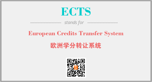 英文缩略词“ECTS”经常作为“European Credits Transfer System”的英文缩写来使用,中文表示:“欧洲学分转让系统”。本文将详细介绍英文缩写词ECTS所代表英文单词,其对应的中文拼音、详细解释以及在英语中的流行度。此外,还有关于缩略词ECTS的分类、应用领域及相关应用示例等。