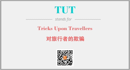 英文缩略词“TUT”经常作为“Tricks Upon Travellers”的英文缩写来使用,中文表示:“对旅行者的欺骗”。本文将详细介绍英文缩写词TUT所代表英文单词,其对应的中文拼音、详细解释以及在英语中的流行度。此外,还有关于缩略词TUT的分类、应用领域及相关应用示例等。