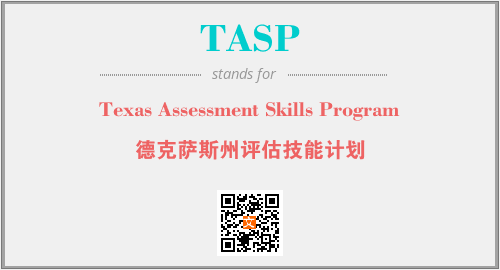 上述内容是“Texas Assessment Skills Program”作为“TASP”的缩写,解释为“德克萨斯州评估技能计划”时的信息,以及英文缩略词TASP所代表的英文单词,其对应的中文拼音、详细解释以及在英文中的流行度和相关分类、应用领域及应用示例等。
