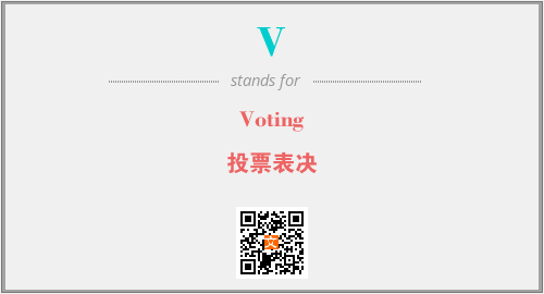上述内容是“Voting”作为“V”的缩写,解释为“投票表决”时的信息,以及英文缩略词V所代表的英文单词,其对应的中文拼音、详细解释以及在英文中的流行度和相关分类、应用领域及应用示例等。