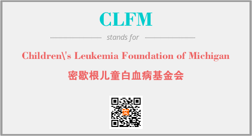 上述内容是“Children\'s Leukemia Foundation of Michigan”作为“CLFM”的缩写,解释为“密歇根儿童白血病基金会”时的信息,以及英文缩略词CLFM所代表的英文单词,其对应的中文拼音、详细解释以及在英文中的流行度和相关分类、应用领域及应用示例等。