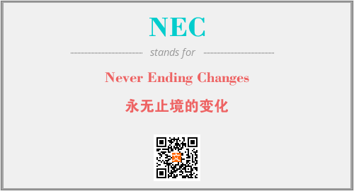 英文缩略词“NEC”经常作为“Never Ending Changes”的英文缩写来使用,中文表示:“永无止境的变化”。本文将详细介绍英文缩写词NEC所代表英文单词,其对应的中文拼音、详细解释以及在英语中的流行度。此外,还有关于缩略词NEC的分类、应用领域及相关应用示例等。